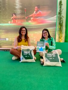 Durante o maior evento climático do mundo, o Caderno de Boas Práticas também chegou à Blue Zone, espaço das negociações entre governos, lideranças e organizações internacionais. A deputada estadual Tia Jú apresentou o material à ONU, ampliando o alcance e a relevância das ações da Fundação.